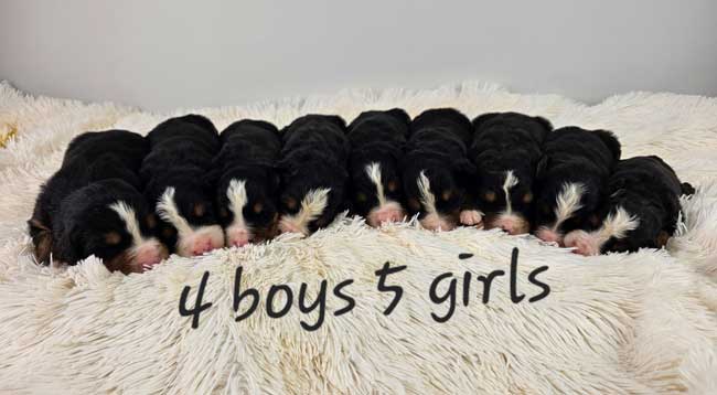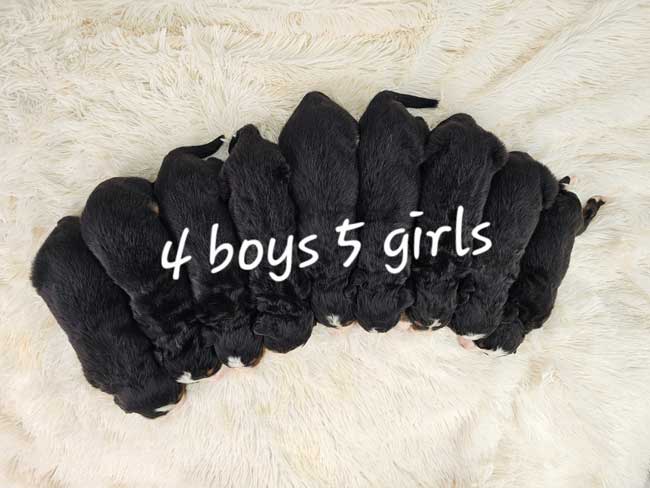 Both parents are Health genetic tested! Mom (Heidi) is a purebred AKC Registered Bernese Mt. Dog, weighing 88 lbs. Dad (Winston) is a purebred AKC Registered Bernese Mt. Dog weighing 125 lbs. Estimated Adult weight is 90-125 lbs.