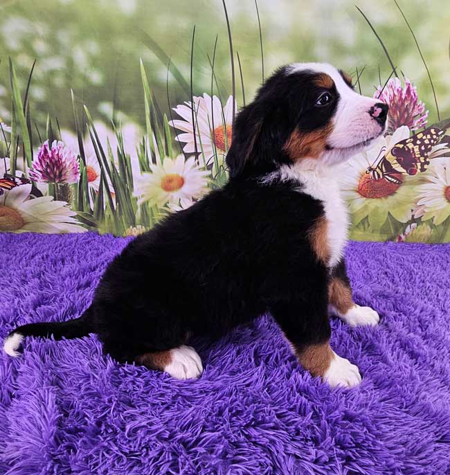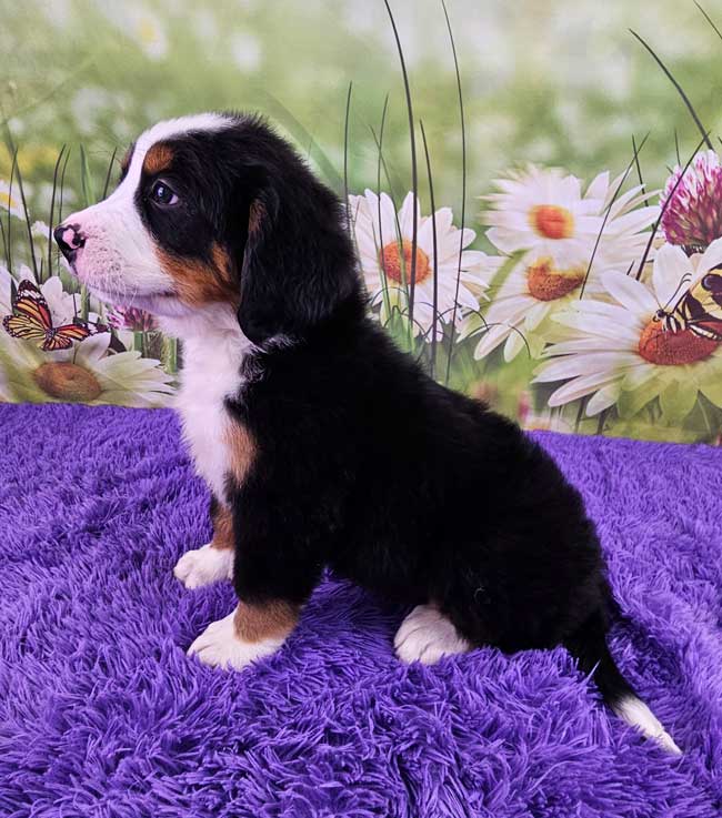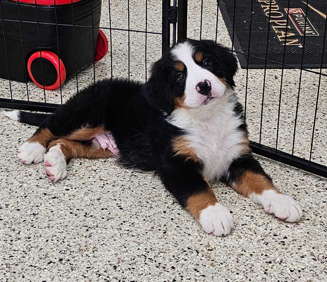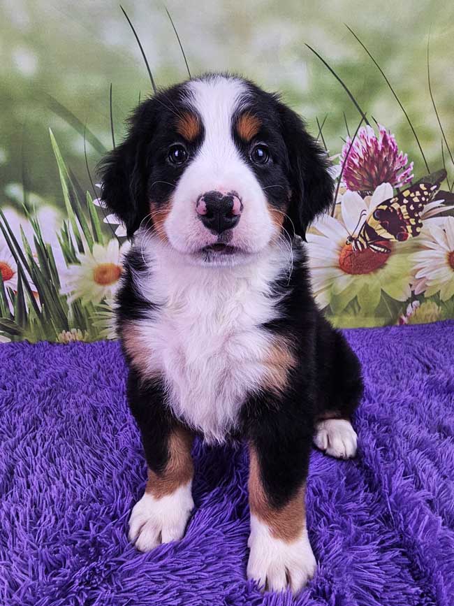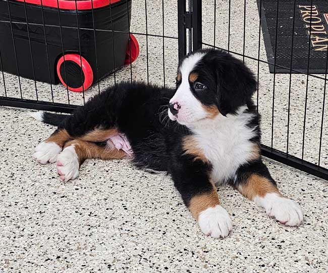 Both of the parents are health genetic tested to ensure that none of the puppies are affected by any hereditary health problem the breed may have. Mom (Trudie) is a purebred AKC Registered Bernese Mt. Dog, weighing 67 lbs. Dad (King) is a purebred AKC Registered Bernese Mt. Dog weighing 85 lbs. Estimated Adult weight is 65-85 lbs.