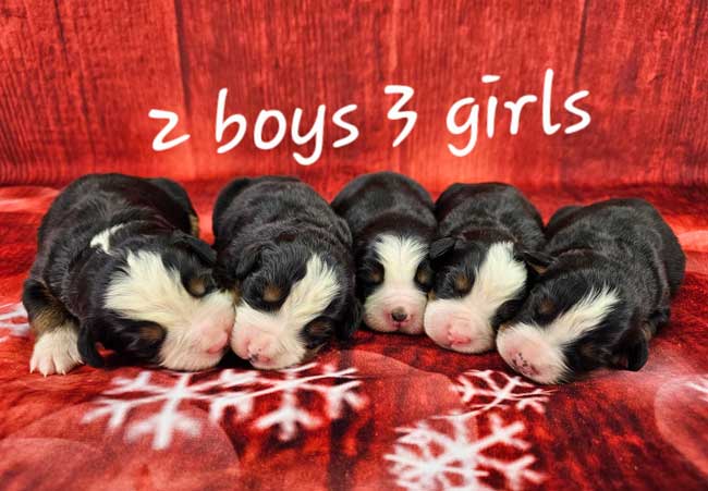 Both of the parents are health genetic tested to ensure that none of the puppies are affected by any hereditary health problem the breed may have. Mom (Trudie) is a purebred AKC Registered Bernese Mt. Dog, weighing 67 lbs. Dad (King) is a purebred AKC Registered Bernese Mt. Dog weighing 85 lbs. Estimated Adult weight is 65-85 lbs.