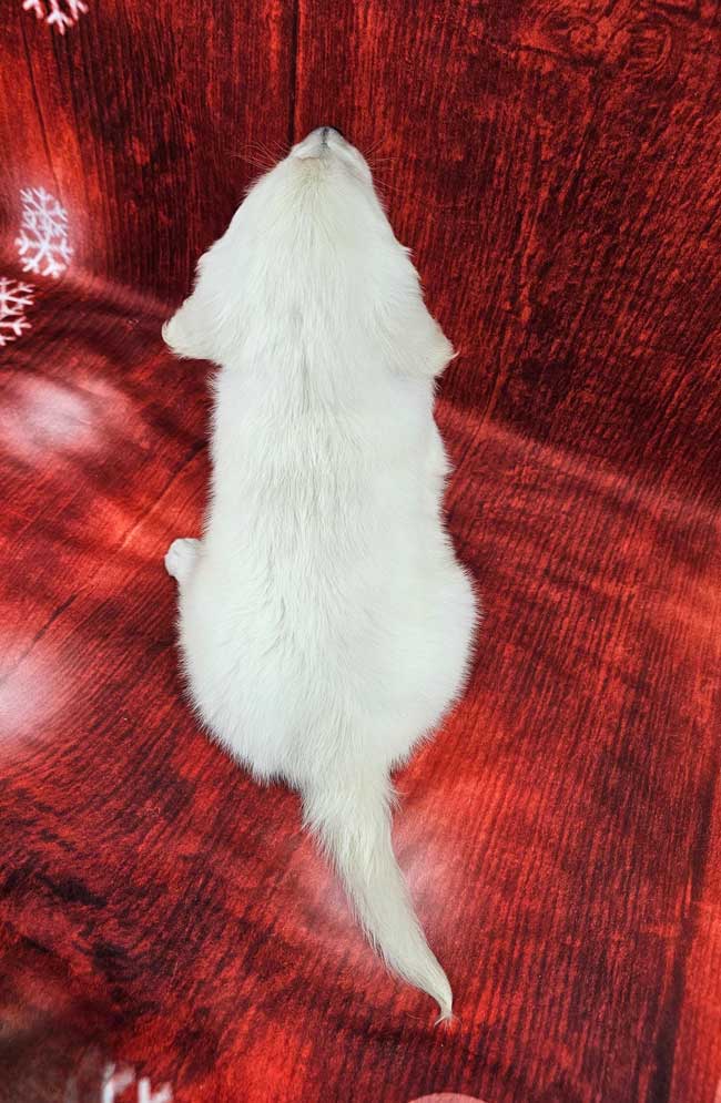 Frosty is well socialized by our family, he will come to you, up to date on vaccines, worming program, and an entire vet exam, AKC Registration papers and records will transfer to new owner at time of purchase along with a Genetic Health Guarantee.