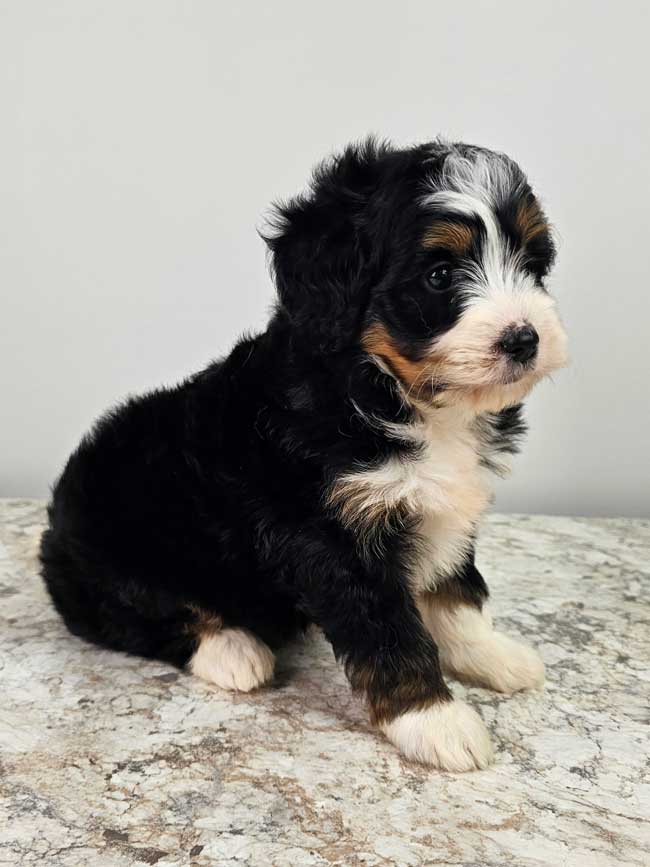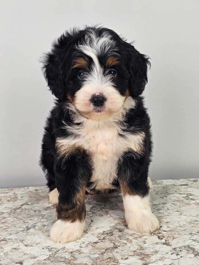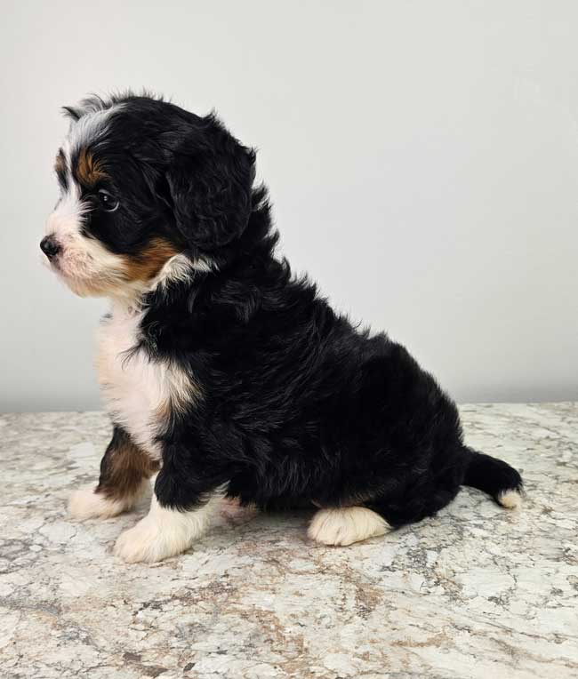 Both of the parents are health genetic tested to ensure that none of the puppies are affected by any hereditary health problem the breed may have. Mom (Stella) is a 77 lb. AKC registered Bernese Mt. Dog, Dad (Blake) is also an AKC registered Mini. Poodle weighing 9 lbs. Estimated Adult weight is 25-35 lbs.