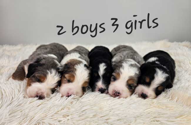 Both of the parents are health genetic tested to ensure that none of the puppies are affected by any hereditary health problem the breed may have. Mom (Delilah) is a 76 lb. AKC registered Bernese Mt. Dog, Dad (Diamond) is also an AKC registered Mini. Poodle weighing 9 lbs. Estimated Adult weight is 25-35 lbs.
