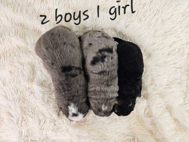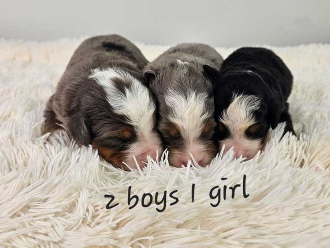 Both of the parents are health genetic tested to ensure that none of the puppies are affected by any hereditary health problem the breed may have. Mom (Keri) is a 88 lb. AKC registered Bernese Mt. Dog, Dad (Blake) is also an AKC registered Mini. Poodle weighing 9 lbs. Estimated Adult weight is 25-40 lbs.