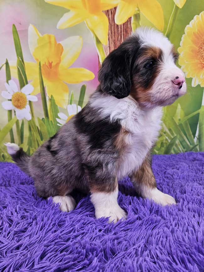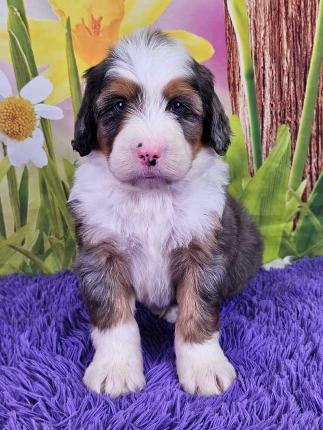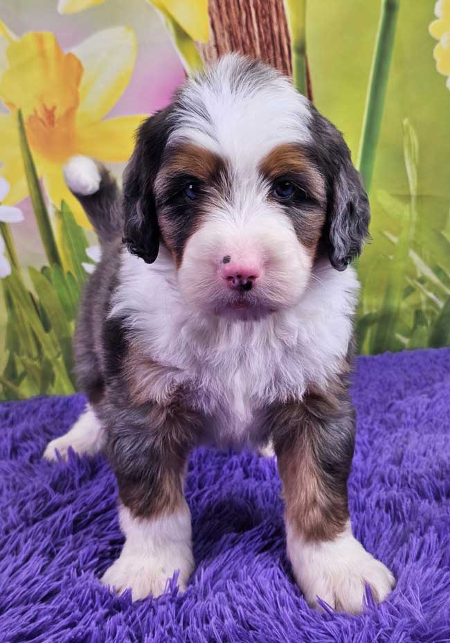 Both of the parents are health genetic tested to ensure that none of the puppies are affected by any hereditary health problem the breed may have. Mom (Snickers) is a 92 lb. AKC registered Bernese Mt. Dog, Dad (Blake) is also an AKC registered Mini. Poodle weighing 9 lbs. Estimated Adult weight is 30-40 lbs.