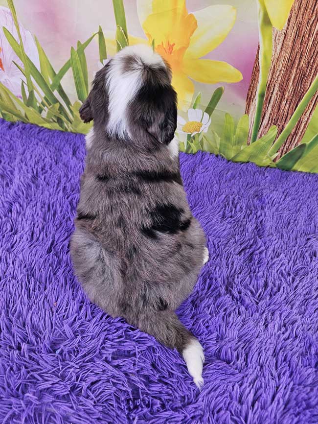 Slate is well socialized by our family, he will come to you, up to date on vaccines, worming program, and an entire vet exam, records will transfer to new owner at time of purchase along with a Genetic Health Guarantee.