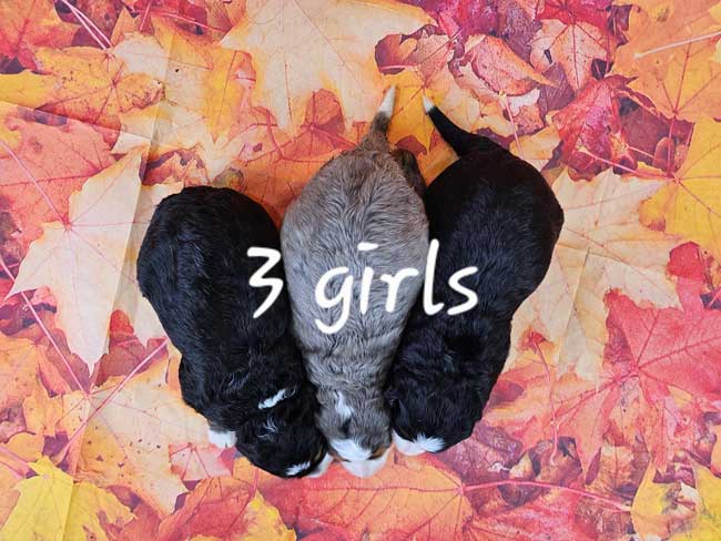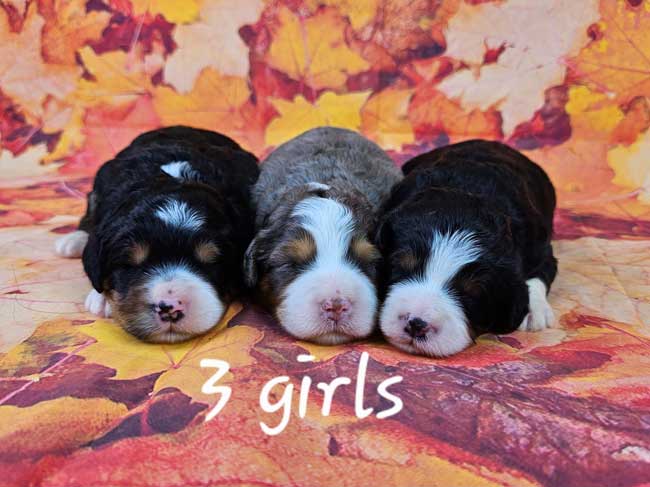 Both of the parents are health genetic tested to ensure that none of the puppies are affected by any hereditary health problem the breed may have. Mom (Stella) is a 77 lb. AKC registered Bernese Mt. Dog, Dad (Blake) is also an AKC registered Mini. Poodle weighing 9 lbs. Estimated Adult weight is 25-35 lbs.