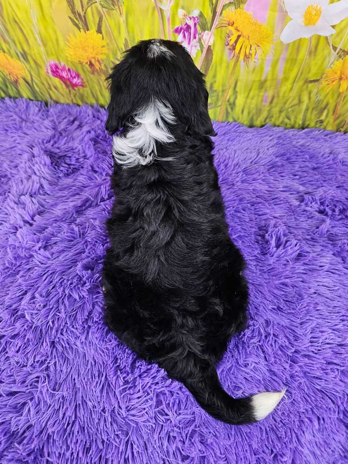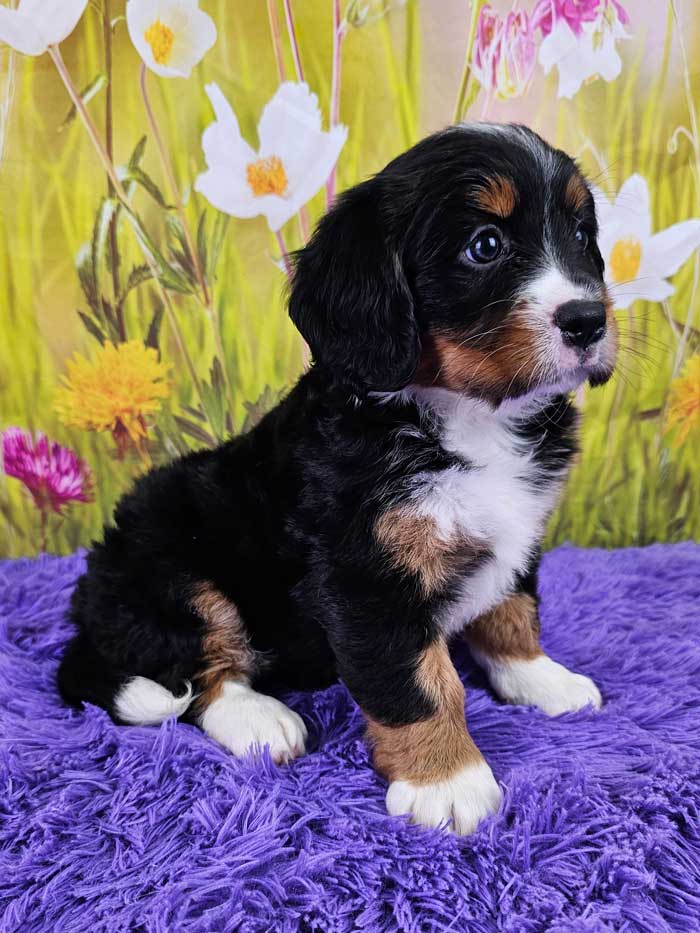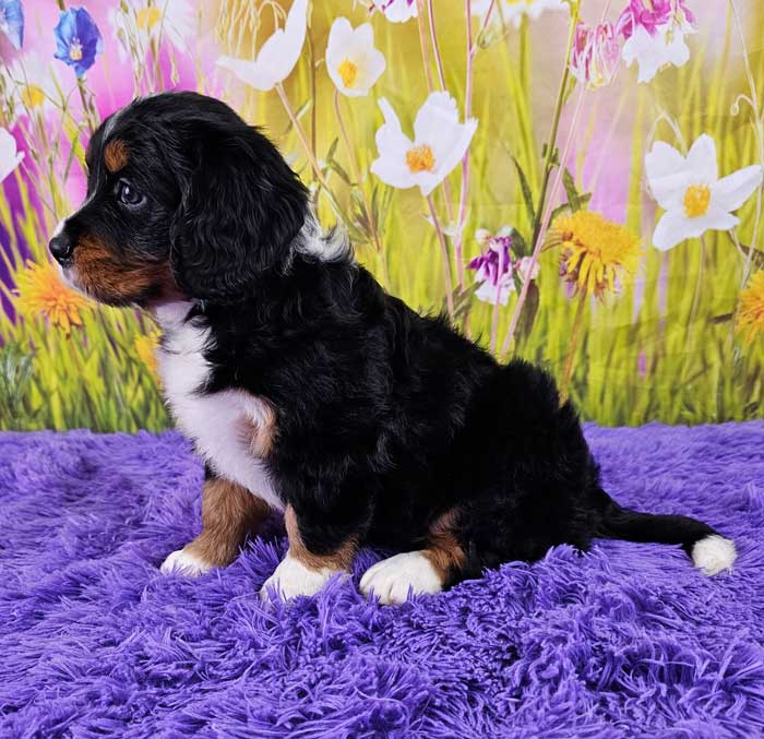 Both parents are health genetic tested! Mom (Brina) is a purebred AKC Registered Bernese Mt. Dog, weighing 60 lbs. Dad (Max) is a purebred AKC Registered King Charles Cavalier weighing 15 lbs. Estimated Adult weight is 30-45 lbs.