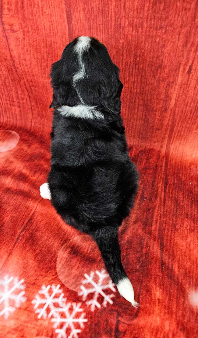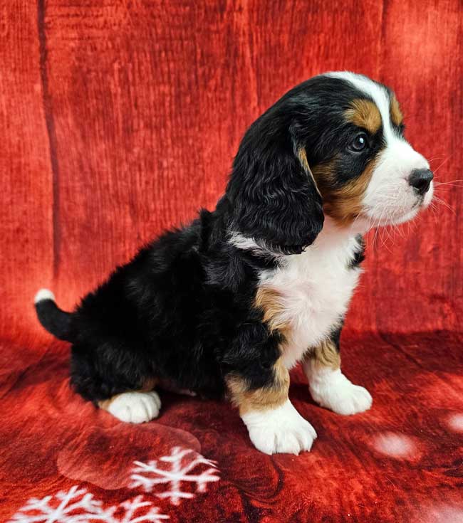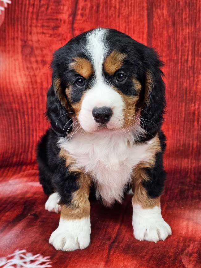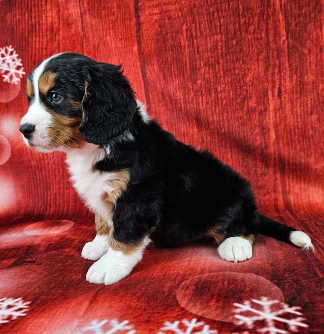 Both of the parents are health genetic tested to ensure that none of the puppies are affected by any hereditary health problem the breed may have.  Mom (Shana) is a purebred AKC Registered Bernese Mt Dog, weighing 88 lbs. Dad (Maxwell) is a purebred AKC Registered King Charles Cavalier weighing 16 lbs. Estimated Adult weight is 30-55 lbs.