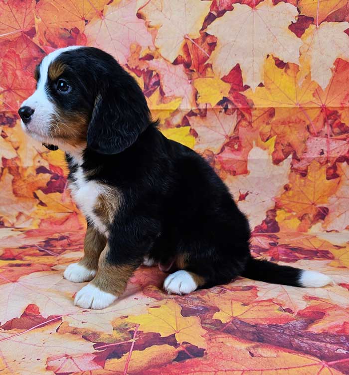 Both parents are health genetic tested! Mom (Holly) is a purebred AKC Registered Bernese Mt. Dog, weighing 72 lbs. Dad (Maxwell) is a purebred AKC Registered King Charles Cavalier weighing 15 lbs. Estimated Adult weight is 30-45 lbs.