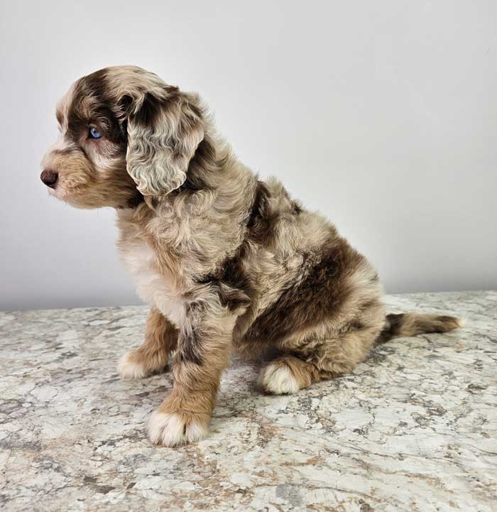 Scrumptious, sweet, and oh-so-gentle, Brynn is the warm and fuzzy puppy equivalent to a freshly baked cinnamon roll! She is a kind heart who has happy, soft energy, and a level of patience that is beyond the maturity of such a young girl dog! Brynn is contemplative, appreciates connection and affection but if she doesn’t get her way- there’s nothing she takes too seriously or concerning to leave a negative impression on her memories! If you are looking for an emotional support animal or the once-in-a-lifetime canine companion experience – Brynn is a top pick!