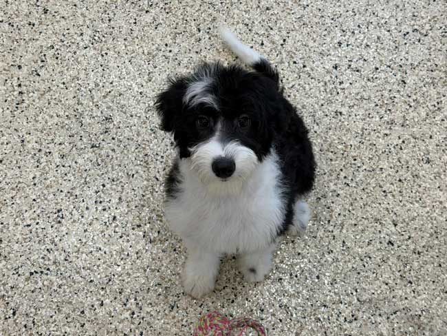 Both of the parents are health genetic tested to ensure that none of the puppies are affected by any hereditary health problem the breed may have. Mom (Daisy) is a 50 lb. first generation standard Sheepadoodle. Dad (Cobalt) is an AKC registered Mini Poodle weighing 17 lbs. Estimated Adult weight is 25-40 lbs.
