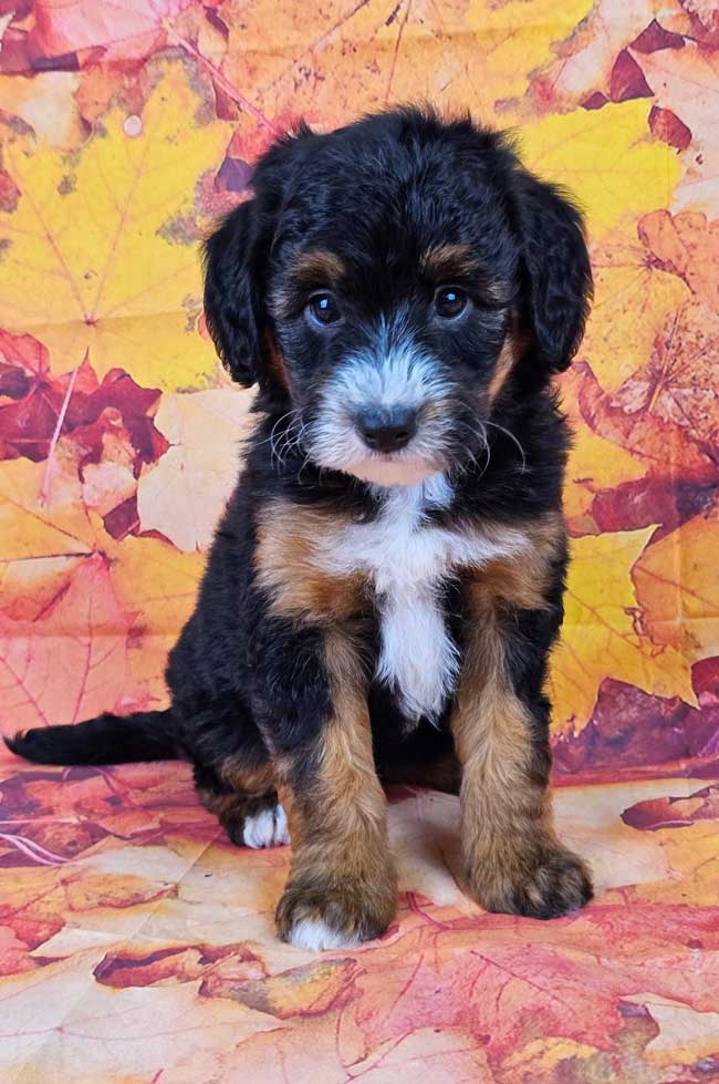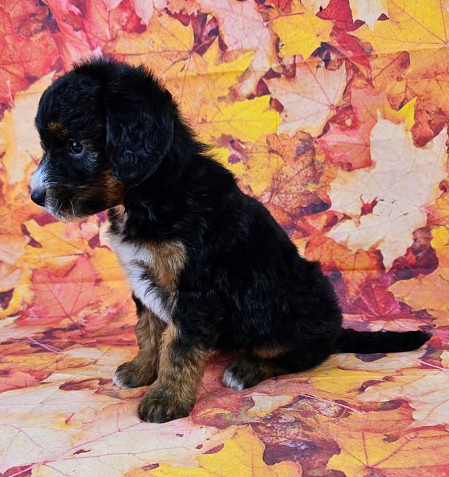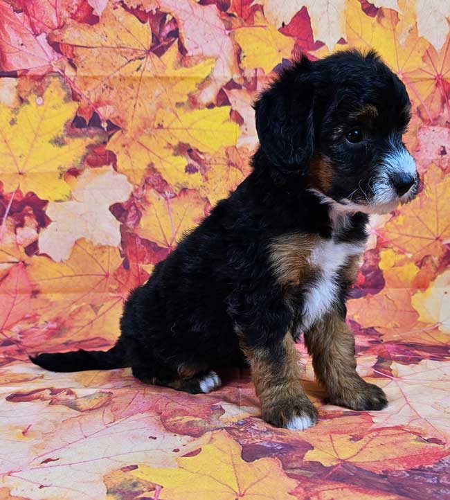 Kerry is a Micro Mini Sheepadoodle. Both of the parents are health genetic tested to ensure that none of the puppies are affected by any hereditary health problem the breed may have. Mom (Maisie) is a 30 lb. first generation Mini. Sheepadoodle. Dad (Rojo) is an AKC registered Mini Poodle weighing 17 lbs. Estimated Adult weight is 20-25 lbs.