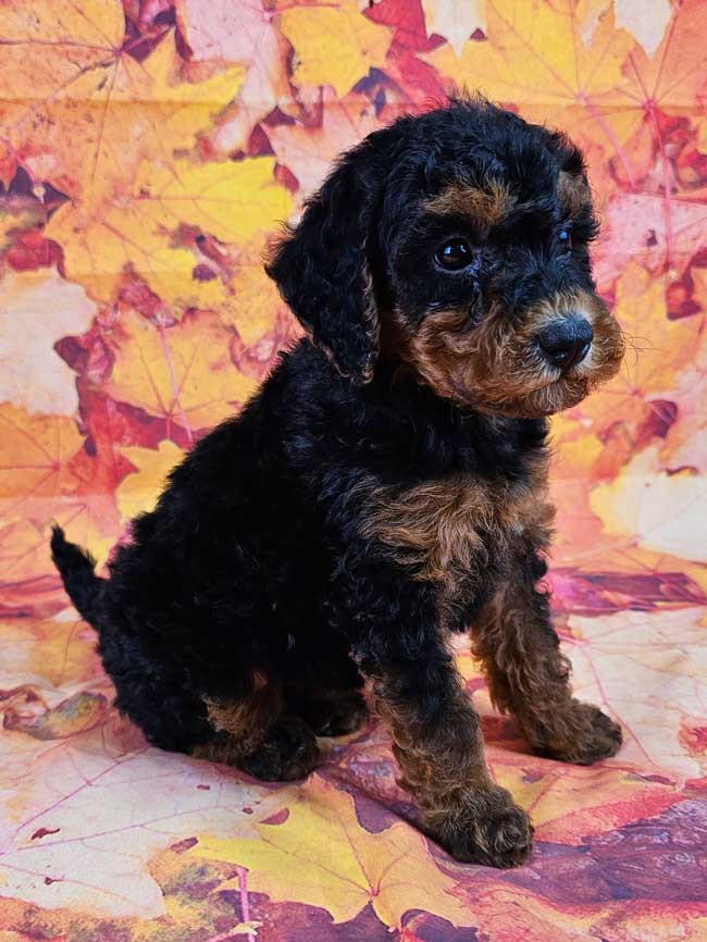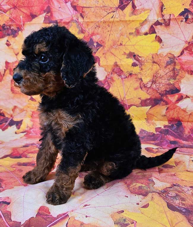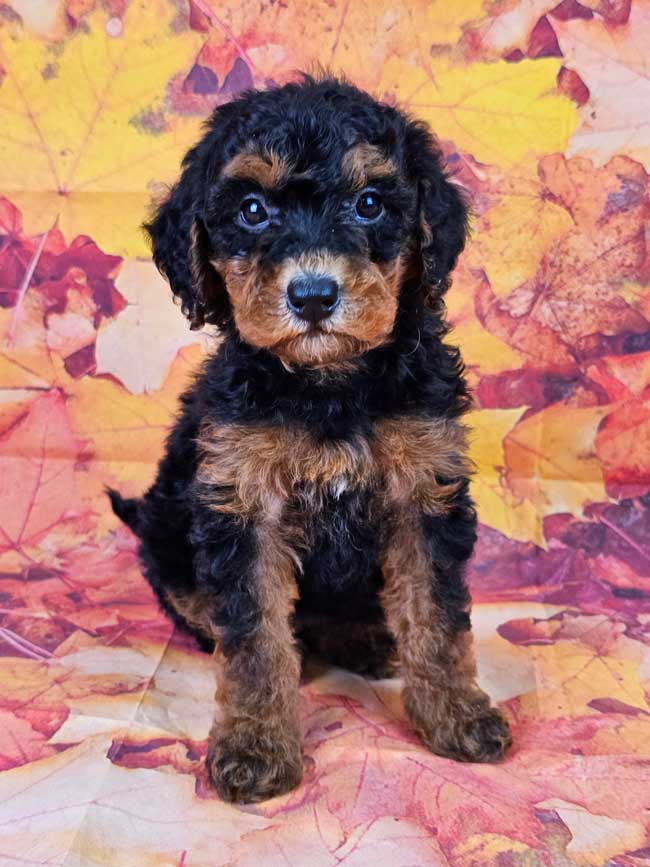 Kimber is a Micro Mini Sheepadoodle. Both of the parents are health genetic tested to ensure that none of the puppies are affected by any hereditary health problem the breed may have. Mom (Maisie) is a 30 lb. first generation Mini. Sheepadoodle. Dad (Rojo) is an AKC registered Mini Poodle weighing 17 lbs. Estimated Adult weight is 20-25 lbs.
