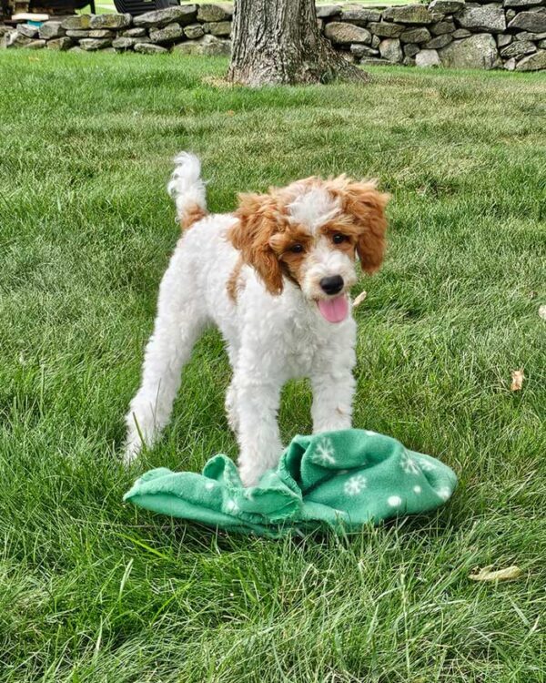Addy is an AKC registered Mini. Poodle. Her expected adult weight is around 9-10 lbs. Both of her parents are Health genetic clear including CDPA & CDDY! Her color DNA will be at/at ky/ky.  Mom (Adele) is a 9 lb. AKC registered Toy Poodle. Dad (Tiger) is a 14 lb. AKC registered Miniature Poodle.